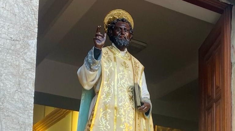 S. Filippo ha il viso nero, perché secondo la tradizione popolare proveniva dall’Africa. E’ rivestito degli abiti sacerdotali, quelli tradizionali.
